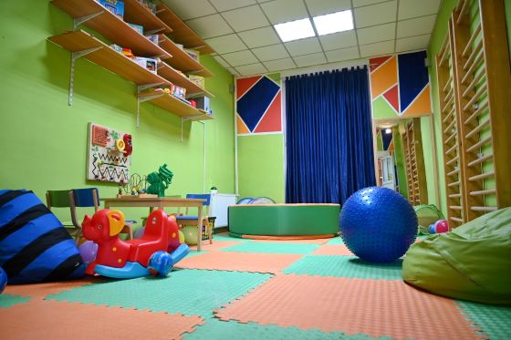 Просторијата е опремена со сензорна туба со меурчиња со диск, интерактивна монтесори табла, татами подлога, диско топка, базен со топчиња, огледало, рипстоли, разни стимулативни светлосни, конструктивни и други играчки.