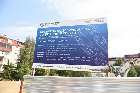Министерството за труд и социјална политика и Општината Битола за оваа детска градинка потпишаа договор за Грант за изградба и опремување на градинката од околу 57.000.000 денари.