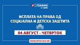 Министерството за труд и социјална политика информира дека денеска започна исплатата на правата од социјална, детска и цивилна заштита за месец јули 2022 година.