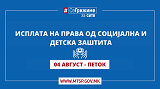 Министерството за труд и социјална политика информира дека денеска започна исплатата на правата од социјална, детска и цивилна заштита за месец јули 2023 година.