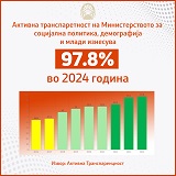 Во согласност со нашата посветеност на транспарентност и одговорност, Министерството за социјална политика, демографија и млади е гордо да објави дека постигнало степен на транспарентност од 97.8%, поставувајќи се како второто најверојатно институција на национално ниво. Овој резултат е доказ за нашата постојана посветеност на обезбедување на чисти и чесни услуги за нашите граѓани.