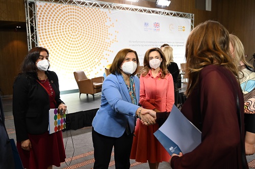 На панел дискусијата на која свои обраќања имаа сопругата на претседателот Елизабета Ѓоргиевска, британската амбасадорка Рејчел Галовеј, шефот за соработка на Делегацијта на ЕУ во Република Северна Македонија Стефен Худолини и постојаниот координатор на ОН Росана Дуџак, министерката посочи дека со новиот Закон за спречување и заштита од насилство врз жените и семејното насилство со кој првпат се воведува постапување на институциите со должно внимание“, се овозможува интегриран мултисекторски и мултидисциплинарен одговор во справувањето со насилството, што претставува солидна основа за исполнување на стандардите од Истанбулската конвенција.