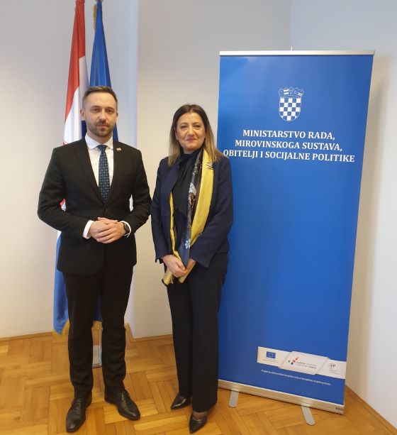 Министерката за труд и социјална политика, Јованка Тренчевска како предводник на делегацијата на Република Северна Македонија на чело со Деканот на Филозофскиот факултет, Ратко Дуев во Република Хрватска денеска оствари протоколарна средба со Министерот за труд, пензиски систем, семејство и социјална политика во Република Хрватска, Марин Пилетич и со членови на неговиот кабинет.