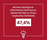 Министерството за труд и социјална политика во октомври 2022 година, со примена на мерките за заштеда на електрична енергија, евидентира помала потрошувачка од 47.4% во споредба со потрошувачката на електрична енергија истиот месец претходната година.