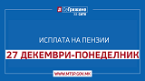 Ministria e Punës dhe Politikës Sociale informon se prej sot 27.12.2021 (e hënë), fillon pagesa në etapa e pensioneve të nëntorit. Pensionet do të paguhen para kohe dhe në etapa, për të mundësuar mbrojtje më të madhe të pensionistëve në kushte të rrezikut nga virusi COVID-19.