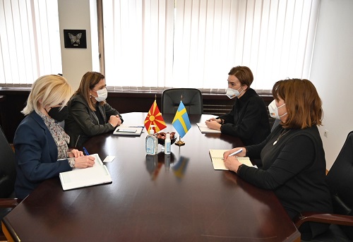 Министерката за труд и социјална политика Јованка Тренчевска денеска оствари средба со шведската амбасадорка во нашата земја, Кристин Форсгрен Бенгтсон, на која беа потврдени добрите меѓудржавни односи, поддршката која Шведска и ја дава на нашата држава и соработката на повеќе полиња значајни за градење на современо општество.