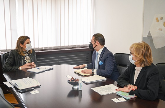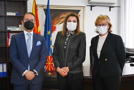 Министерката за труд и социјална политика, Јованка Тренчевска денеска се сретна со директорот на канцеларијата на Европската банка за обнова и развој (ЕБОР) во Северна Македонија, Анди Аранитаси, на која разговараа за досегашната соработка и можностите за работа на проекти кои се во областа и надлежностите на министерството.