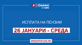 Министерството за труд и социјална политика известува дека од утре 26.01.2022 год. (среда) започнува етапната исплата на јануарските пензии. Пензиите ќе бидат исплатени предвреме и етапно, со цел да се овозможи поголема заштита на пензионерите во услови на опасност од коронавирусот КОВИД-19.
