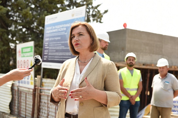 „Министерството за труд и социјална политика продолжува да инвестира во изградба на нови и проширување на постоечките градинки со цел да го зголеми опфатот на деца во предучилишно образование“, посочи министерката Шахпаска.