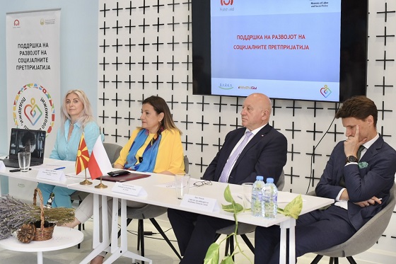 „Министерството за труд и социјална политика докажа дека е посветено во делот на поддршката на социјалното претприемништво преку усвојувањето на првата Стратегија за развој на социјални претпријатија усвоена во септември 2021 година. Го развивме и Националниот Центар за поддршка на социјални претпријатија кој е дизајниран да функционира како инкубатор за поддршка на постојните и на новите социјални претпријатија, но и за подигање на знаењето и свеста кај сите засегнати страни за социјалната економија и социјалните претпријатија во рамките на проектот финансиран од Европската Унија „Поддршка на социјалните претпријатија“, истакна Тренчевска.