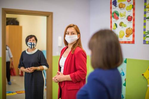 Заменичката на претседателот на Владата задолжена за економски прашања и координација со економските ресори, Мила Царовска, заедно со дополнителната заменичка министерка за труд и социјална политика, Санела Шкријељ и градоначалникот на општина Карпош, Стефан Богоев, денес извршија работна посета на новата градинка изградена во населбата Бардовци.