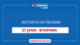 Министерството за труд и социјална политика известува дека на ден 27.06.2023 година (вторник) започнува етапната исплата на пензиите за месец јуни.