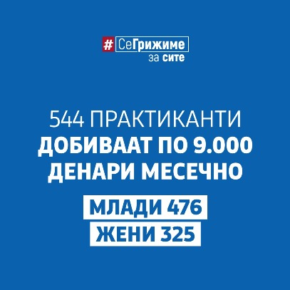 За мерката практиканство, потпишани се договори со 476 правни субјекти, за ангажирање на вкупно 544 невработени лица. Од нив, 476 се до 29-годишна возраст а 325 се жени. Практикантството трае 3 месеци, а исплатата се врши на крајот на секој месец, на сметка на практикантите, по претходен извештај од фирмата за редовност, во износ од 9.000,00 денари по лице за еден месец. Интересот на компаниите покажува дека ја препознаа можноста да обучат кадар согласно своите потреби, а младите луѓе го прифаќаат практикантството затоа што им обезбедува добро работно искуство и им ги подобрува шансите за квалитетна работа.