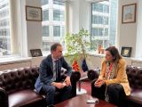 Министерката за труд и социјална политика, Јованка Тренчевска во рамки на работната посета на Брисел, каде што денеска започна билатералниот скрининг состанок за поглавје 3.19 Вработување и социјална политика оствари средба со амбасадорот на Република Северна Македонија во Европската унија, Зулфи Исмаили.