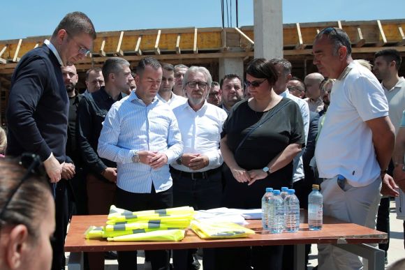 Министерот за социјална политика, демографија и млади Фатмир Лимани, заедно со претседателот на Владата, Христијан Мицкоски, министерот за локална самоуправа, Златко Перински, заменик министерот Ѓоко Велковски, градоначалникот на Општина Гази Баба, Боби Стефковски, денеска извршија увид на градежните активности на новата детска градинка во населба Инџиково, Општина Гази Баба.