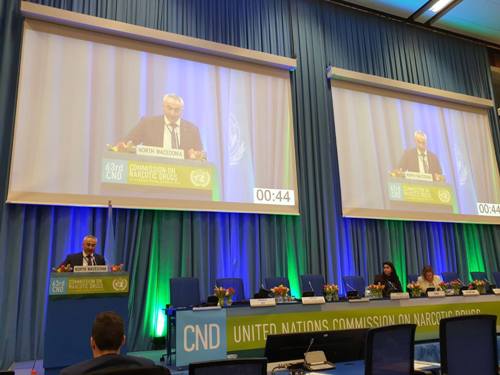 Согласно политиките на Министерството за труд и социјална политика, една од активностите е развивање на социјални услуги за ресоцијализација на корисници на дрога, преку обезбедување на социјална услуга во Центар за социјална рехабилитација на лица кои употребуваат, односно злоупотребуваат дрога и други психотропни супстанции и прекурзори, преку Програма за социјална ресоцијализација во терапевтска заедница, финансиски поддржано од буџетот на Министерство за труд и социјална политика. На сесијата на Комисијата за наркотични дроги учествуваа и државниот секретар на МОН Енвер Хусејин и амбасадорот -постојан претставник на РСМ при ОН Игор Џундев.