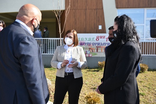 „Целосната обнова на градинката „8 април“ и на Центарот за деца од улица, кои беа опожарени во 2017 година, е во втората фаза, откако во првата беше завршен еден дел од градинката кој веќе функционира со капацитет да згрижи 150 деца. Министерството за труд и социјална политика учествува во опремување на градинката во вредност од 6.5 милиони денари, додека градежните активности се реализираат со 1.5 милиони долари од Амбасадата на Кралството Норвешка во Белград преку УНДП“, објасни премиерот Заев и додаде дека се обезбедени услови според највисоките стандарди за енергетска ефикасност, како и стандардите за пристапност за децата со попреченост да уживаат еднаков пристап со своите врсници.