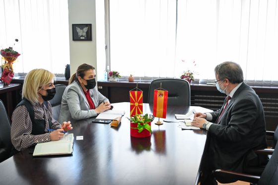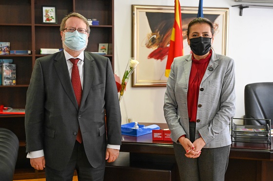 Таа го запозна амбасадорот за активностите што ги реализира Министерството за труд и социјална политика, особено во делот на родовата еднаквост, социјалните услуги за ранливите групи на локално ниво, за проектите нега и грижа на стари лица и деинституционализацијата, како дел од социјалната реформа.