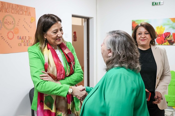 Министерката за труд и социјална политика, Јованка Тренчевска заедно со претставничката на УНИЦЕФ во земјава, Патриција ди Џовани, денеска го посетија Центарот за поддршка на згрижувачки семејства при ЈУ Детски дом 11 октомври, во Скопје.