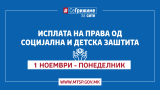 Министерството за труд и социјална политика информира дека денеска започна исплатата на правата од социјална, детска и цивилна заштита за месец октомври 2021 година.