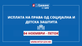 Министерството за труд и социјална политика информира дека денеска започна исплатата на правата од социјална, детска и цивилна заштита за месец октомври 2022 година.