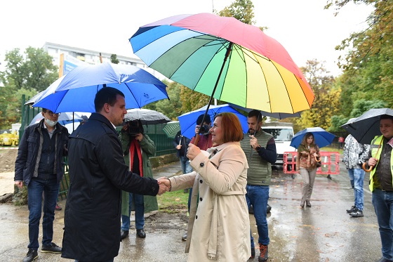 Министерката за труд и социјална политика, Јагода Шахпаска заедно со градоначалникот на Општина Карпош, Стефан Богоев, извршија увид на градежните активности на детската градинка „Орце Николов“ во населбата Карпош 3.