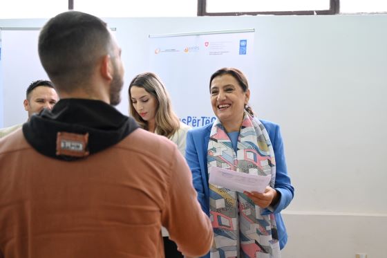 Министерката за труд и социјална политика, Јованка Тренчевска заедно со директорот на Агенцијата за вработување на Република Северна Македонија, Беким Мурати, денеска ги доделија грантовите за самовработување во Кичево.