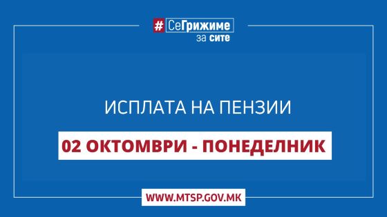 Министерството за труд и социјална политика претходно извести и дека со исплатата на пензијата за месец август се враќа редовниот начин на исплата наместо предвремената исплата на пензијата воведена поради прогласувањето на пандемија во државата и донесените мерки за заштита од корона вирусот.