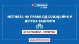 Министерството за труд и социјална политика информира дека денеска започна исплатата на правата од социјална, детска и цивилна заштита за месец септември 2023 година.