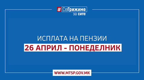 - Të hënën, 26.04.2021, do të realizohet pagesa e pensioneve në lartësi deri 11.000 denarë;