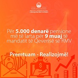 Mbi 340.000 pensionistë në Republikën e Maqedonisë së Veriut nga sot do të marrin pension më të lartë për 2500 denarë. Me rritjen lineare të pensioneve në muajin shtator dhe pensionin e marsit në muajin prill, pensionistët marrin 5000 denarë pension më të lartë për vetëm 9 muaj mandat nga kjo Qeveri.