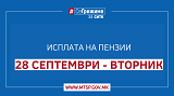 Министерството за труд и социјална политика известува дека денеска 28.09.2021 год. (вторник) започна етапната исплата на септемвриските пензии. Пензиите ќе бидат исплатени предвреме и етапно, со цел да се овозможи поголема заштита на пензионерите во услови на опасност од коронавирусот КОВИД-19.