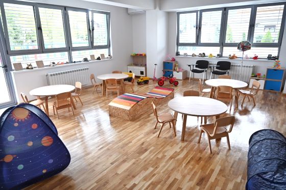 Kopshti, i cili u ndërtua në kuadër të Projektit për Përmirësimin e Shërbimeve Sociale të Ministrisë së Punës dhe Politikës Sociale, ofron përkujdesje për 110 fëmijë të moshës parashkollore.